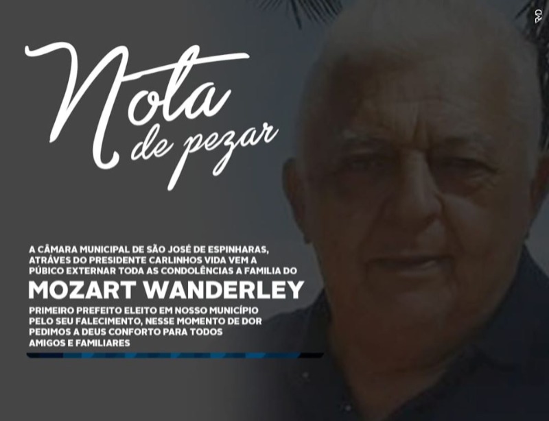 A Câmara Municipal de São José de Espinharas publicou nesta quinta-feira (7) uma Nota de Pesar pelo falecimento do ex-prefeito do município, Mozart Wanderley, ocorrido na quarta-feira na cidade de João Pessoa.Mozart Wanderley foi eleito o primeiro prefeito de São José de Espinharas. Ele tinha 80 anos e administrou a cidade durante o período de 1963 a 1966.